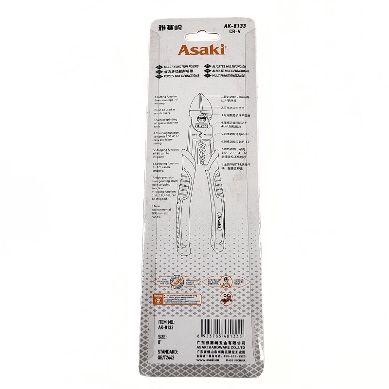 La pince coupante diagonale Asaki 8″ est idéale pour les travaux de coupe précis. Sa conception en acier CR-V traité thermiquement garantit une excellente capacité de coupe et une résistance élevée à l’usure.