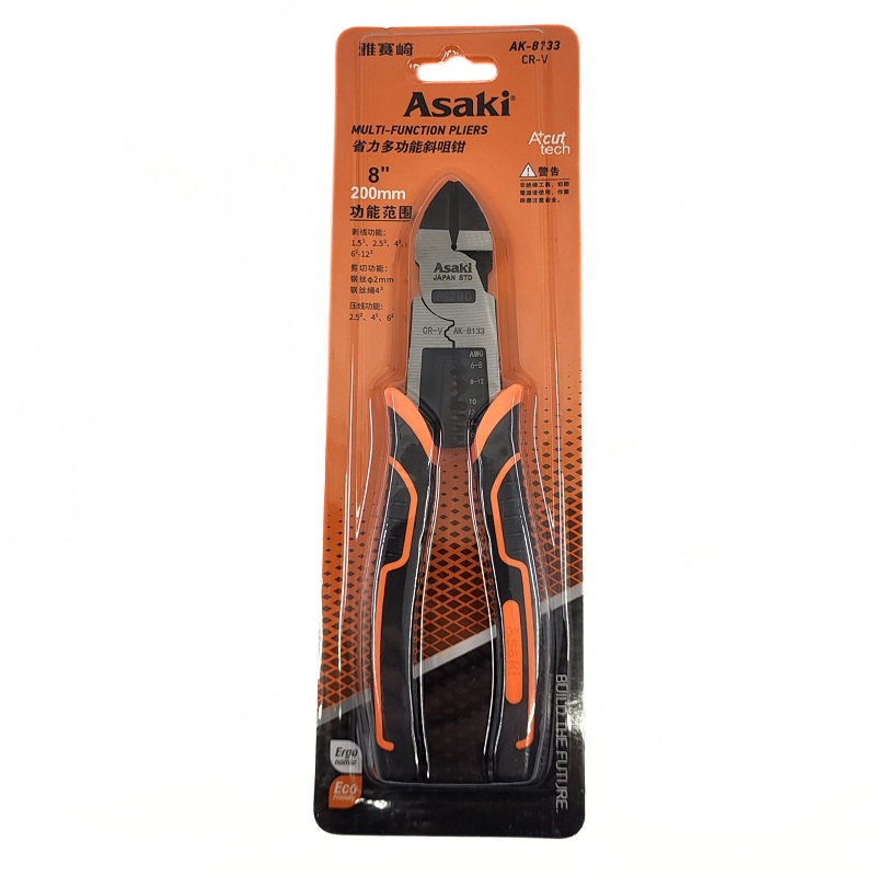 Pince coupante diagonale CR-V Asaki 8″ (200 mm) – Coupe nette et précision
